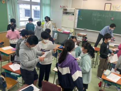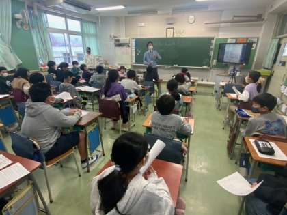 5年生は、同じ温知学舎の上祖師谷中学校の英語の先生による、中学校の体験授業を行いました。小学生も外国語に取り組んで来ているので、発音がとてもいいです。
