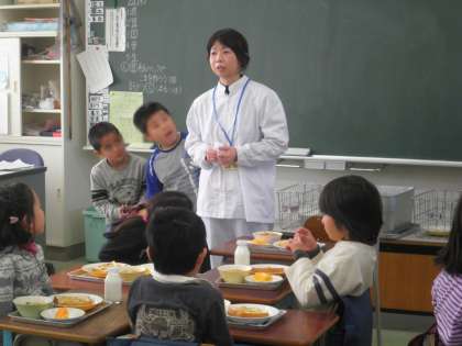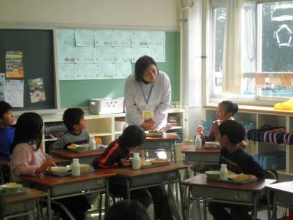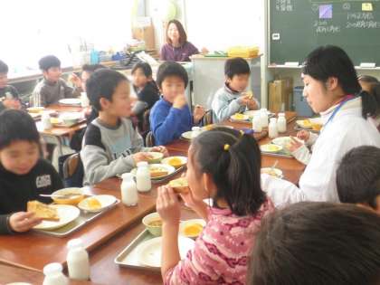 1月24日〜1月30日まで給食週間です。烏山小学校では給食週間に2つの取り組みをしています。一つ目は、給食調理員の方との会食です。給食調理員の方と会食をしていろいろなお話を伺うなどの交流をしています。二つ目は、この給食週間に毎日世田谷でとれる野菜を使っています。今日は世田谷産のカブを使ったトマトシチューでした。とても甘くておいしかったです。