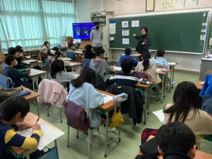 総合的な学習の時間の「手や心で体験しよう」の取り組みで、聴覚に障害のある方をゲストティーチャーとしてお招きして、手話や耳が聞こえない方の生活やそれを支える人々の思いや願いをお聞きし、自分たちにできることを考えました。つくし学級の4年生も参加しています。