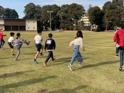 第一生命グループ女子陸上競技部によるランニング教室が学校運営委員会の健全育成部の主催で行われました。4年生以上の20数名が参加しました。選手やコーチから、速く走るコツをトレーニングしていただきました。