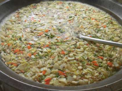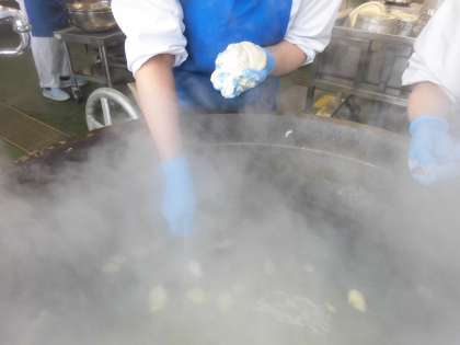 ☆今日は、昔懐かしい「すいとん」です。室町時代から食べられている郷土料理になります。戦時中は、調味料や具にする材料も不足していた為に、あまり美味しくなったようです。今日は、野菜がたくさん入った手作りすいとんをみんなで食べました。
