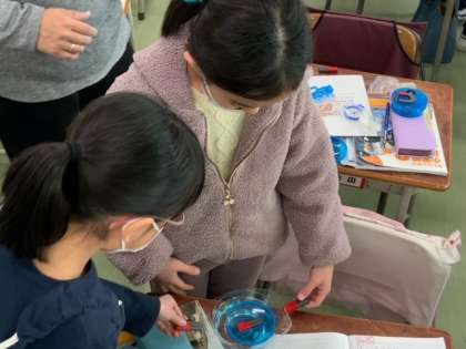 理科で磁石の極同士を近付けるとどうなるのか実験を通して学びます。