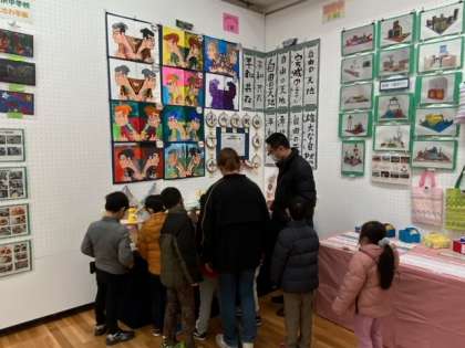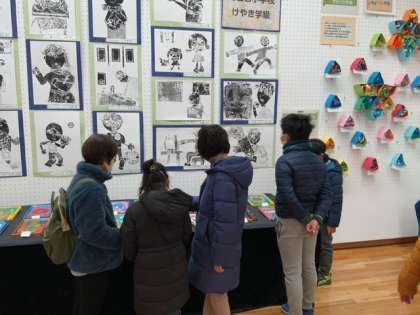 どの学校も力作ぞろいです。子どもたちは、自分の作品を探した後、自分の気に入った作品を見つけます。