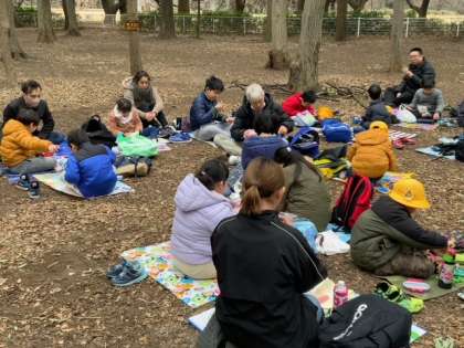 美術館の入口で記念撮影をして、すぐ近くの砧公園でお弁当です。朝早くからご準備くださりありがとうございました。