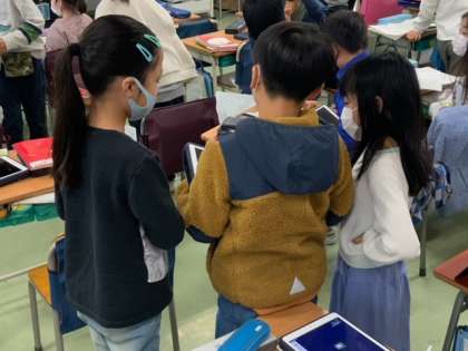 国語で見たこと、感じたことを入れた詩を作っていきます。友達と詩を読み合って感想やよいところを伝え合います。