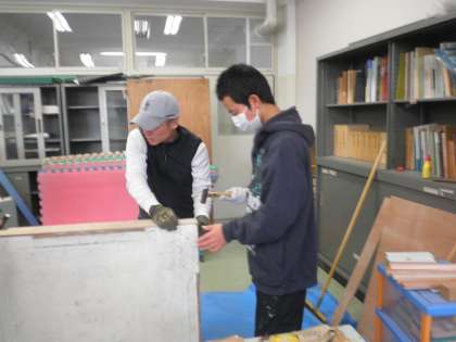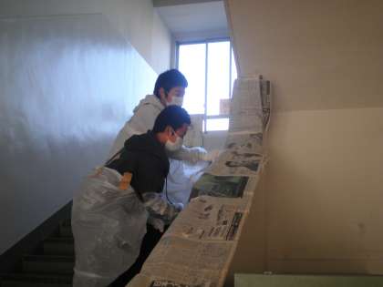 2月1日から3日まで上祖師谷中学校の2年生2名が職場体験にやってきました。主事さんと一緒に階段の壁のペンキ塗り、階段掃除、跳び箱の台の修理、下校のときの交通指導といろいろな仕事に挑戦しました。2人とも一生懸命に働いてくれました。