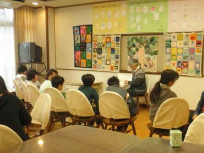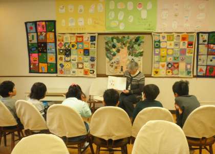 つくし学級の読み聞かせです。「牧の会」代表の牧さんが、毎月1〜2回子どもたちに本を読み聞かせてくださっています。