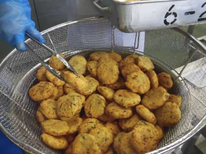 ☆今月の日本の郷土料理は、鹿児島県の「さつま揚げ」です。地元では「つりあげ」と呼ばれており、酒のつまみや弁当のおかずとして、日常的に親しまれています。給食室では、1つ1つ生地から手作業で成型をして、さつま揚げを作りました。
