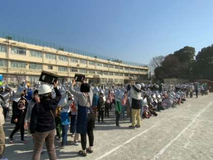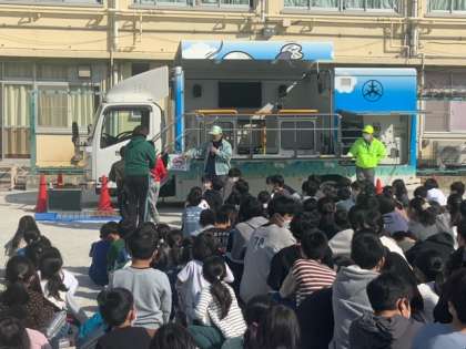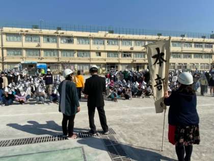 今日は、地震を想定しての避難訓練です。子どもたちは、放送をよく聞いて落ち着いて避難することができました。4年生は、起震車体験もしました。