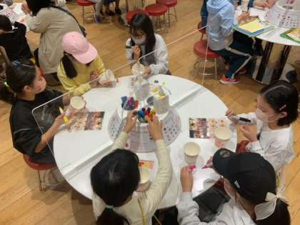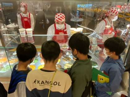 マイカップヌードルファクトリーで、自分で好きにカップに絵をかき、好きな具材を四つ選び、味も選びます。とても楽しく取り組んでいます。