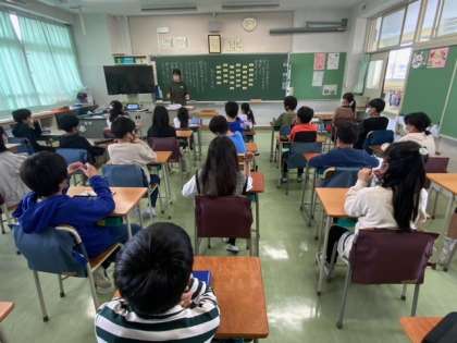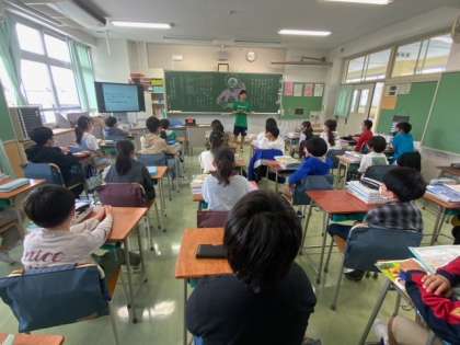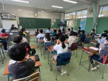 学級開きです。自己紹介や出席を取るときにていねいに健康観察もしています。