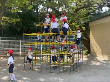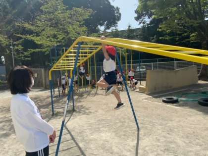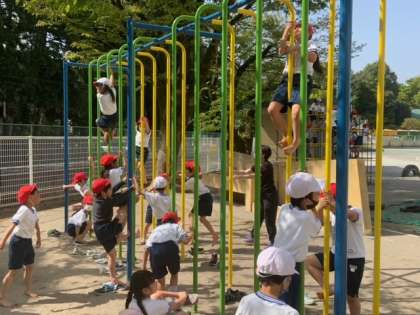 体育で登り棒やうんてい、ジャングルジムなどで様々な体の動かし方を楽しみました。