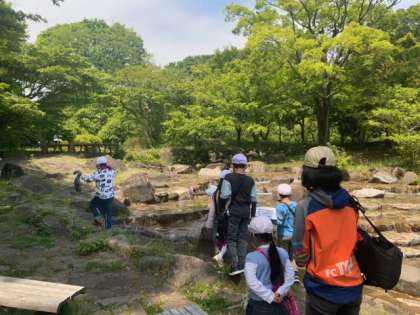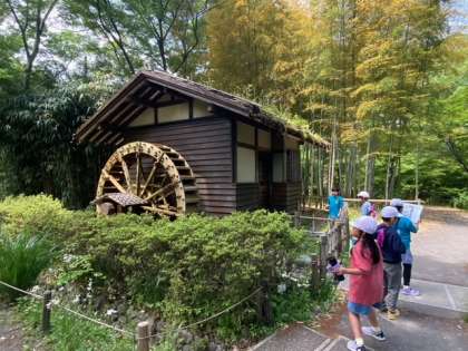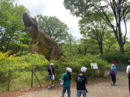 広い敷地内でオリエンテーリングをします。班で行動します。ここまでの移動でも班長さん中心によくまとまって協力することができています。