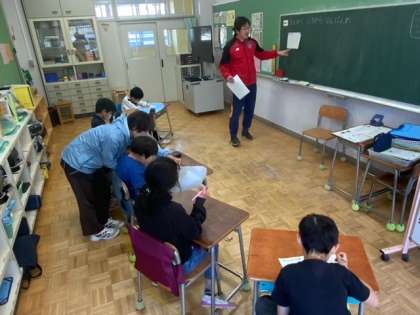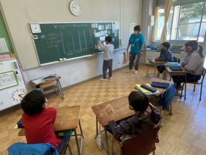 グループに分かれて学習をしています。理科のかさや、算数の前から何番目や、10000までの数などの学習をしています。
