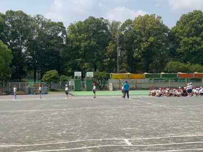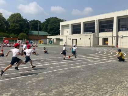 徒競走の練習です。セパレートコースで、ゴールテープを走り抜けることをめあてに取り組んでいます。