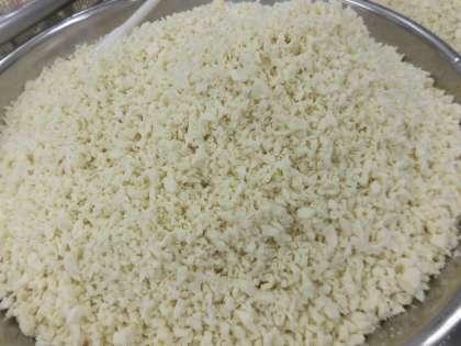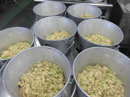 ☆今日のそぼろは、ひき肉に見立てて、たくさんの高野豆腐を粉砕して作りました。栄養満点のそぼろかけごはんの完成です。
