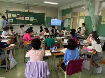 社会科で、憲法改正について、「どちらとも言えない」と回答している人たちは、投票に行くべきか、行かない方がいいかを考えていきます。話し合いが白熱しています。