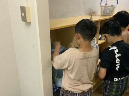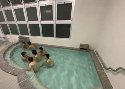 屋上からそのままお風呂に向かいました。体や頭をよく洗って浴槽に入ります。なかなか上手です。