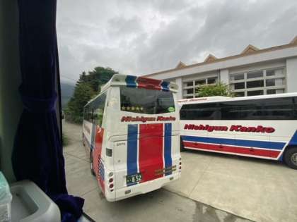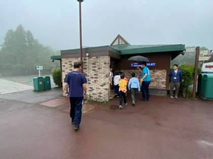 富士サファリパークに到着しました。トイレを済ませていよいよ動物のゾーンへバスに乗ったまま入ります。小雨が降っています。