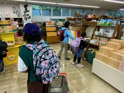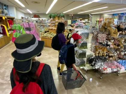 おみやげを買います。とても楽しみにしている子どももいます。残りのお金でよく考えて選んでいます。