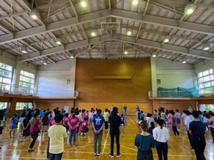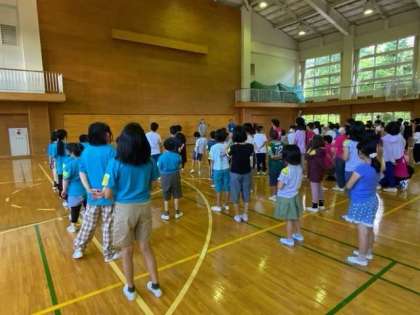 早く片付けを終えて河口湖畔へ行きました。そしてとうとう閉園式です。烏山小学校が、児童代表のことばを言いました。とても立派でした。