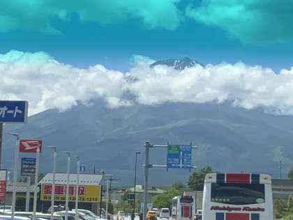 いい天気です。恩賜林庭園へバスに約20分くらい乗って向かいます。途中、富士山と河口湖が見えました。