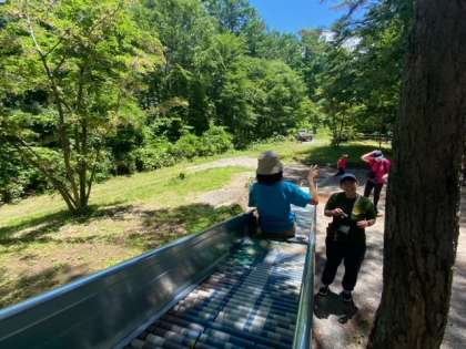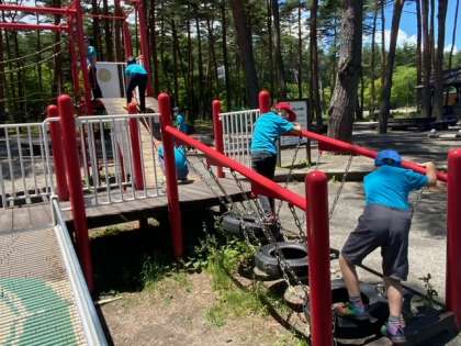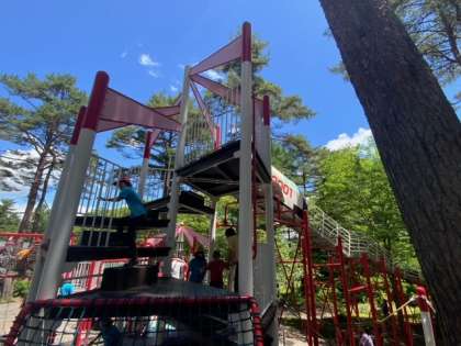恩賜林公園に到着しました。とても大きな遊具で楽しく遊んでいます。