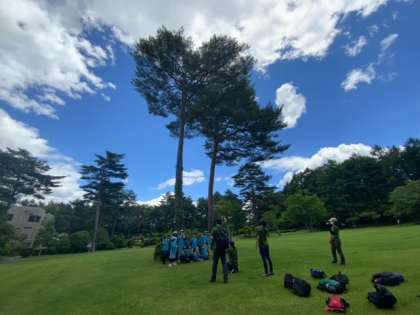 恩賜林公園の芝生で、集合写真を撮り、お弁当です。日が陰ってとても過ごしやすく気持ちがいいです。おいしく食べました。