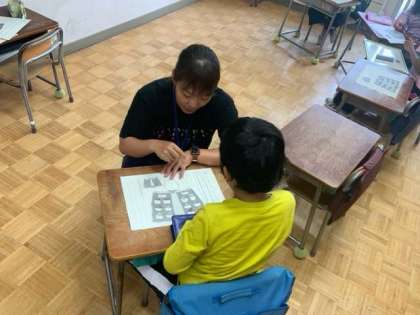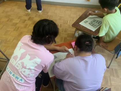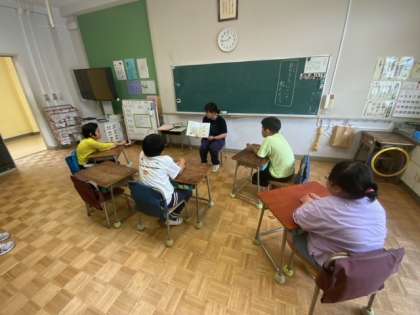 グループ学習での道徳です。自分らしさについて考えます。絵本を読んで、自分が好きなこと、嫌いなことを考えて書いていきます。