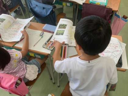 世田谷区にはどのような場所があり、それぞれどのような様子なのか、教科書や副読本から地図やノートに書いていきます。