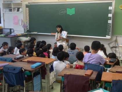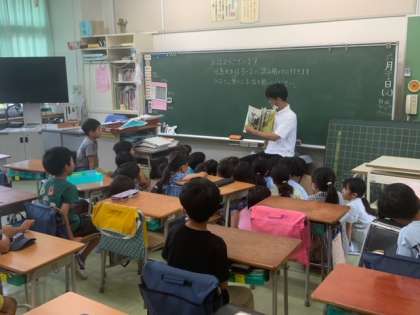 担任の先生以外の先生が教室にやって来ての本を読み聞かせがありました。どの先生が来るのかは内緒です。皆、楽しみにしています。