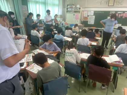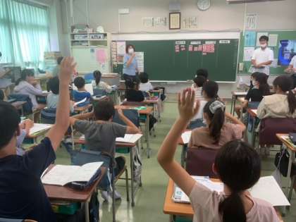 社会科で庄内平野の人々は、どのような工夫をして米づくりを行っているかを学習問題として、それぞれが内容を決めて、めあてを立て、予想をして、分かったことを個人やグループでまとめていっています。久しぶりの教室での研究授業です。