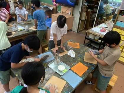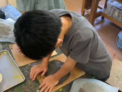 図工の「アイランド」で、あったらいいな!行ってみたいな!そんな島を想像して陶芸用の粘土でつくり始めました。