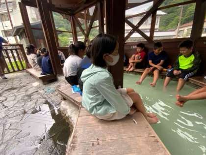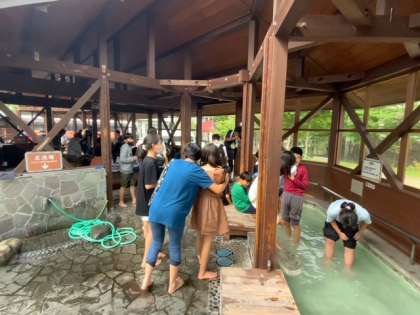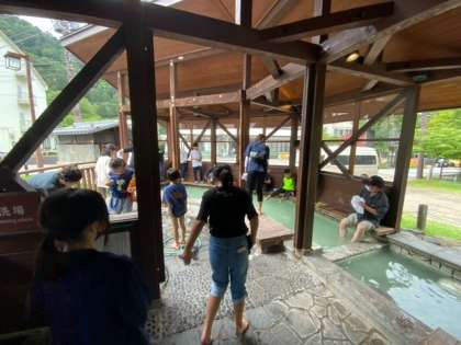 少し早めに宿に着きましたので、近くの足湯に入りに行きました。かなり熱い場所があってびっくりしました。