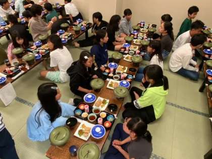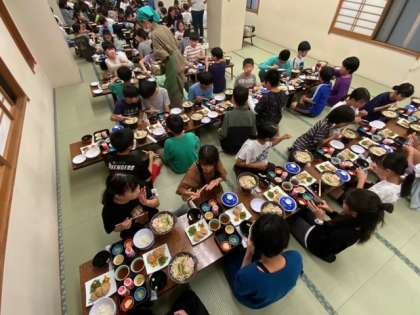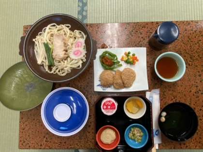 夕食です。日光ゆばもメニューにあります。ハイキングをがんばったので一段とおいしく感じることでしょう。