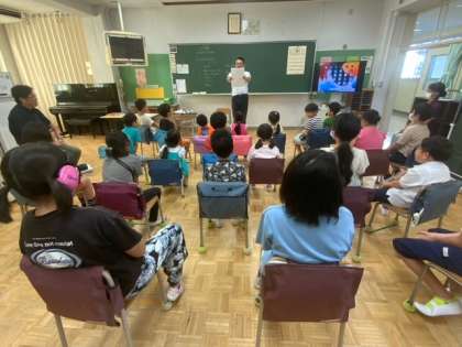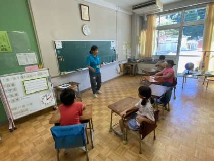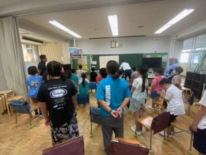 2学期の始業式を放送で参加し、それぞれの学級で分かれた後、授業では夏休みのできごとの発表をしました。