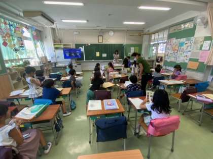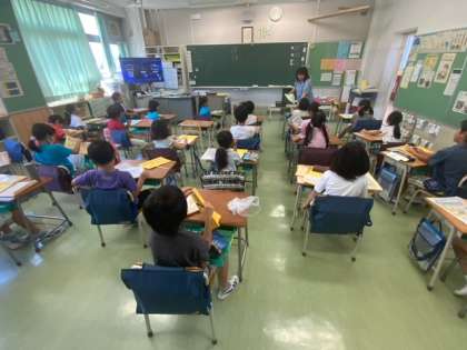 夏休みの宿題をひとつずつ集めたり、配布物を受け取ったり、2学期は何をするのかを確認したりしています。