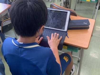 読書感想文に取り組んでいます。タブレットでまずは打ち込み、原稿用紙に清書をしていきます。