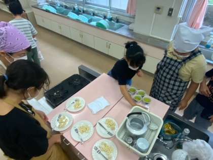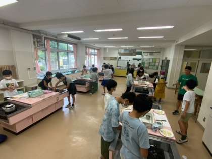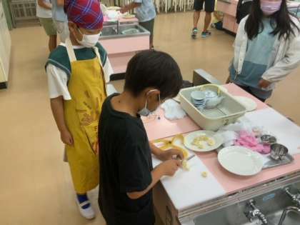 家庭科で、包丁を使って果物を切ったり、湯を沸かして緑茶を入れたりしています。来週には、川場移動教室があります。今日の学習を活かしていきましょう。