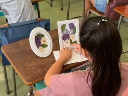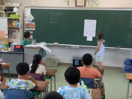 夏休みに取り組んだことを一人一人前で発表しました。