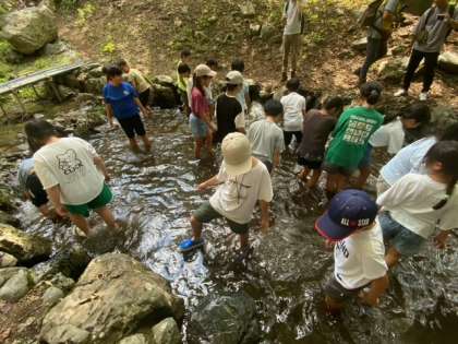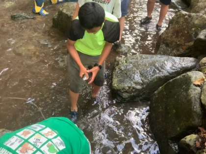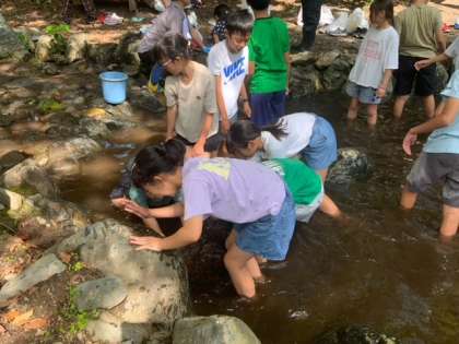 マスつかみ体験です。隅に追いやって両手で掴むのがコツですが、なかなか捕まえられません。