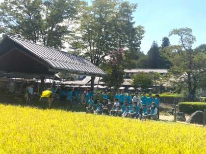 クラスごとの集合写真を撮り、田園プラザでおみやげを購入しています。