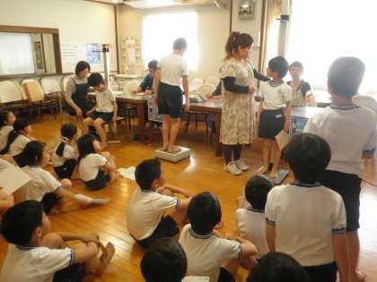 学期一回、発育測定があります。どれだけ身長や体重が増えたかとても大事です。なかには太りたくないという子もいますが、体重が増えないと身長も伸びません。小学生のうちは、太ることも大切です。