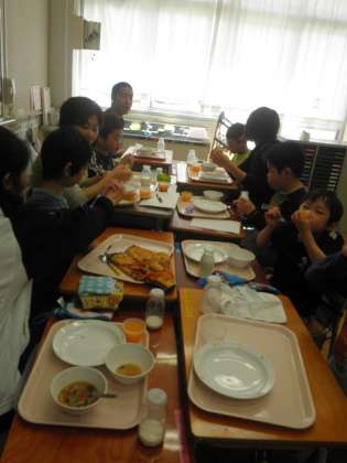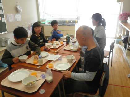 つくし学級の給食の様子を見ました。みんなおいしそうに給食を食べています。今までよりもっと量も食べるようになりました。