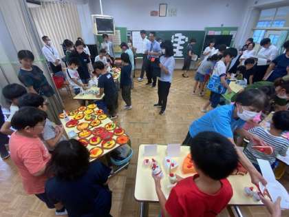 つくし学級での校内研究です。生活単元学習「わくわく つくし 商店がい」です。お店のアピール動画をみた後、さっそくお客さんとお店やさんに分かれてお買い物です。お金は、オリジナルの1つくしのお札です。商品は、1つくしから3つくしまであります。とても活気あふれていました。最後には、今日の取り組みのふりかえりを行いました。