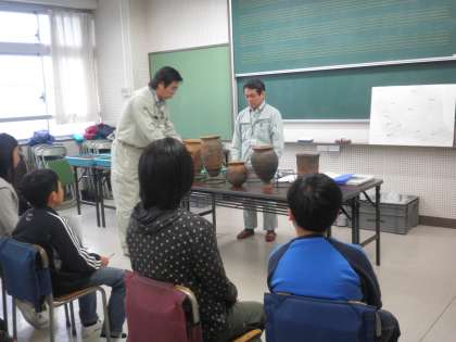 実際に発掘された土器を目の前にして歴史の学習に興味をもってほしいと願っています。