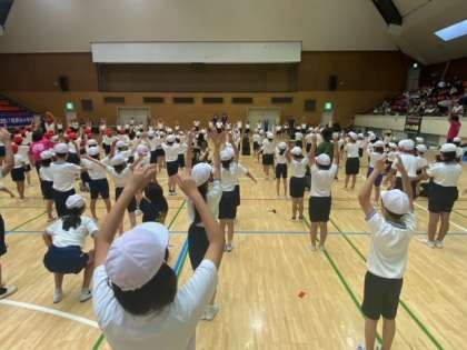 開会式、準備運動を行い、1.2.3年生によるハイキングにいこうです。