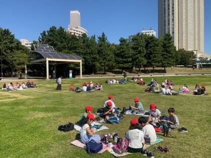 潮風公園でお昼ごはんです。とても広くて気持ちのいい場所です。