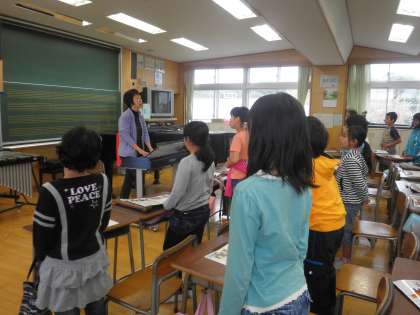 5年生の音楽の授業を見ました。きちんと呼吸をして声を出す練習をしていました。そのあとの発声練習を聞くとやはりきれいな声で発声ができていました。呼吸の仕方は大事ですね。子どもたちも一生懸命に声を出していました。