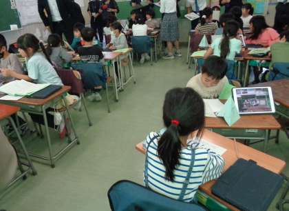 町探検で見てきた地域のお店や場所での体験を、グループで交流しました。自分の住んでいる近くにある魅力的な場所に気付いたり、行ってみたくなったりする活動でした。